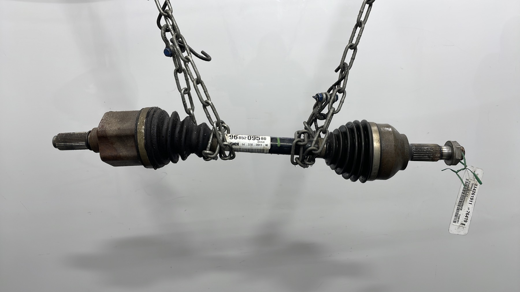 | description | Diamètre cannelure côté roue : 28.6mm Diamètre côté boîte de vitesses : 28.3mm Couronne ABS : Sans Etat des soufflets : Bon 9685209580 |