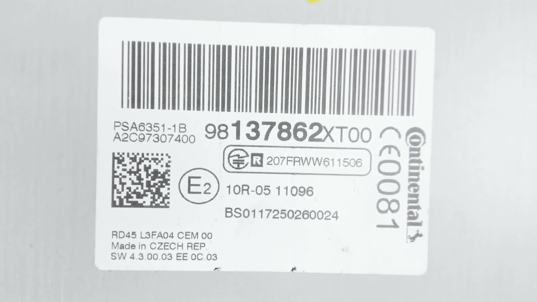 | description | Type : Cd Marque : continental Référence : 98137862XT A2C97307400 Code autoradio : Inconnu |