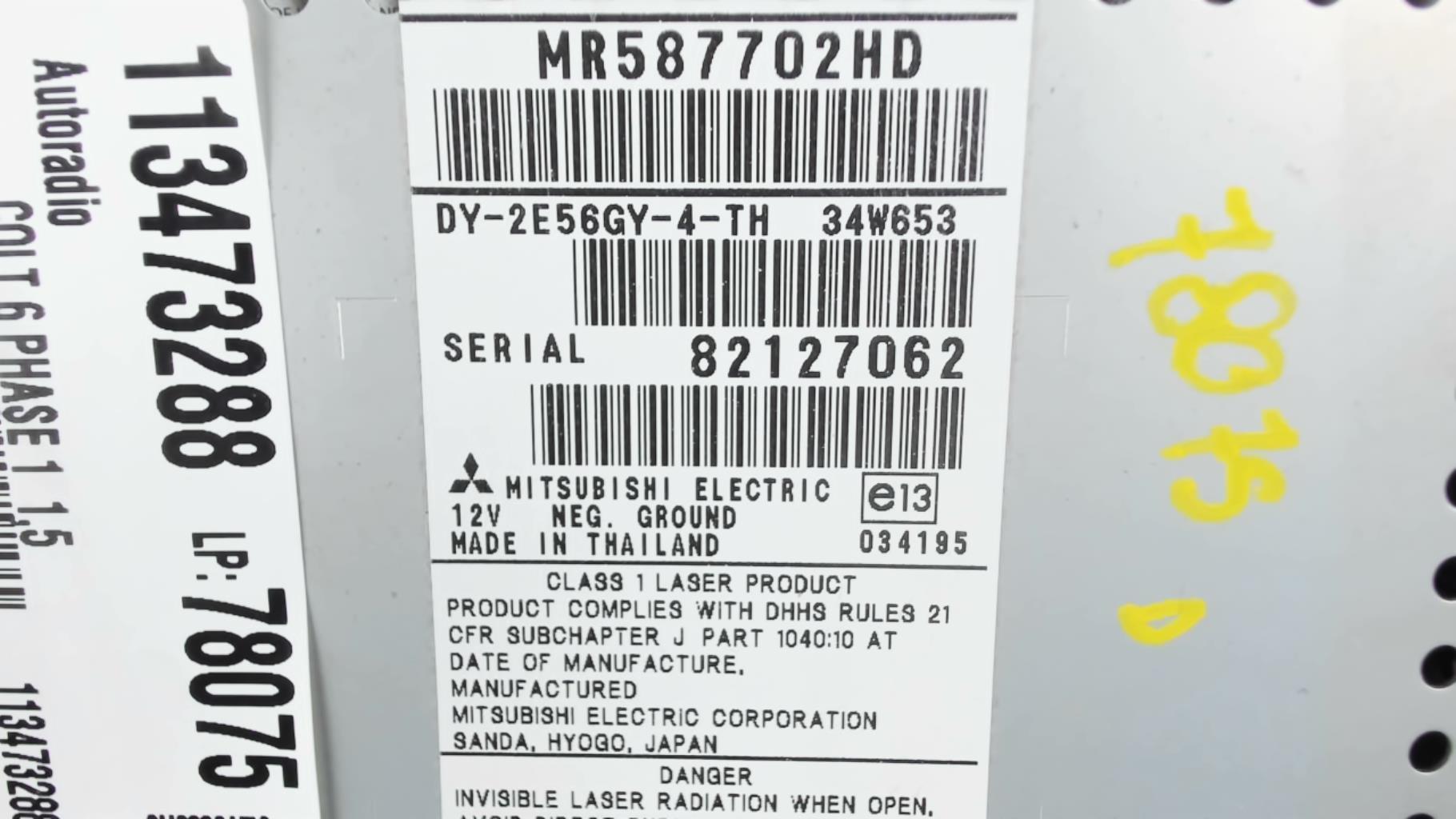 | description | Type : Cd Marque : mitsubishi electronic Référence : MR587702HD Code autoradio : Inconnu |
