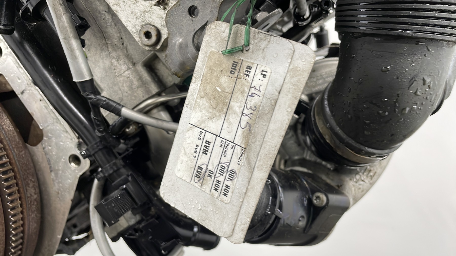 | description | Kilométrage : 194 000 Code moteur : CFG Marque injection : bosch Démarrage sur véhicule : Oui Tests et contrôles : Ok Etat des caches et carters : Bon Etat du faisceau électrique : Bon Type boîte de vitesse : Automatique Infos / Détails : turbo garrett |