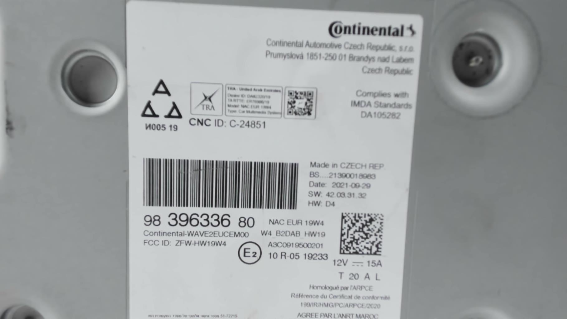 | description | Marque : continental Référence : 9839633680 Code autoradio : Inconnu |
