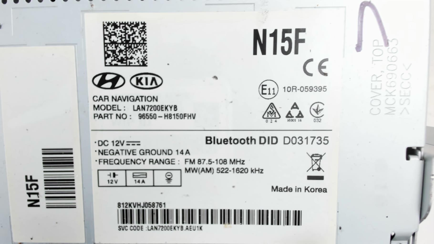 | description | Marque : inconnu Référence : 96550-H8150 Code autoradio : Inconnu |