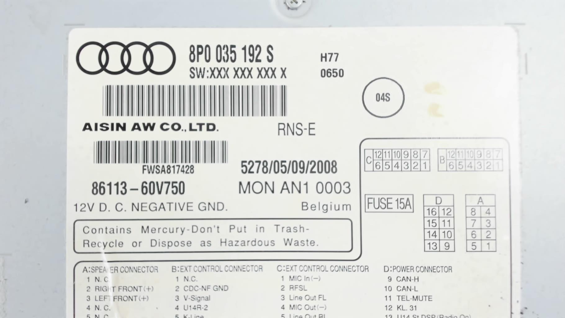 Autoradio Audi A3 2 SPORTBACK PHASE 2 (2008)