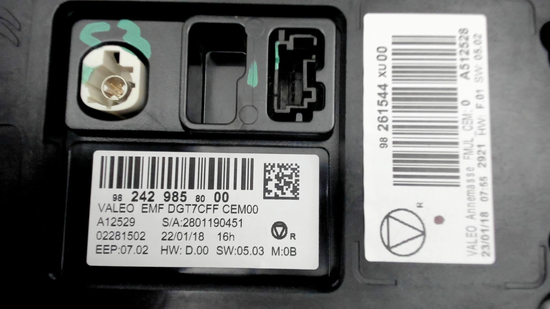 | description | Marque : valeo Nombre de prise(s) : 3 Référence : 9824298580 98261544XU pas de rayure |
