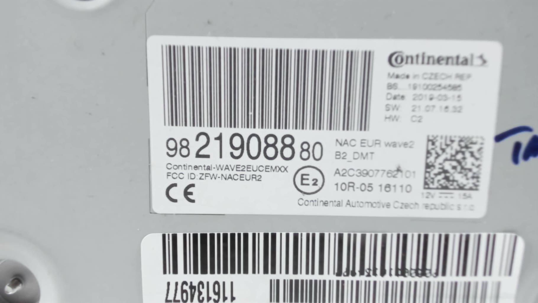 | description | Marque : continental Référence : 9821908880 A2C3907762101 Code autoradio : Inconnu |