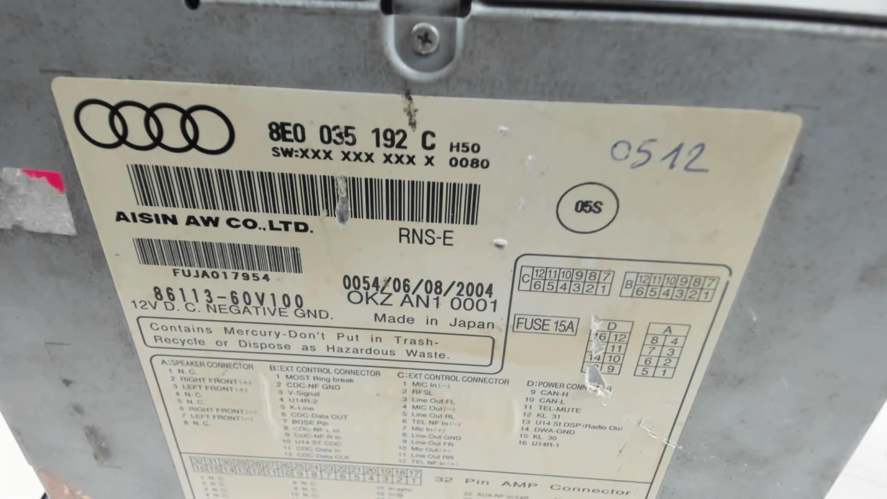| description | Marque : aisin Référence : 8E0035192C Code autoradio : Inconnu |