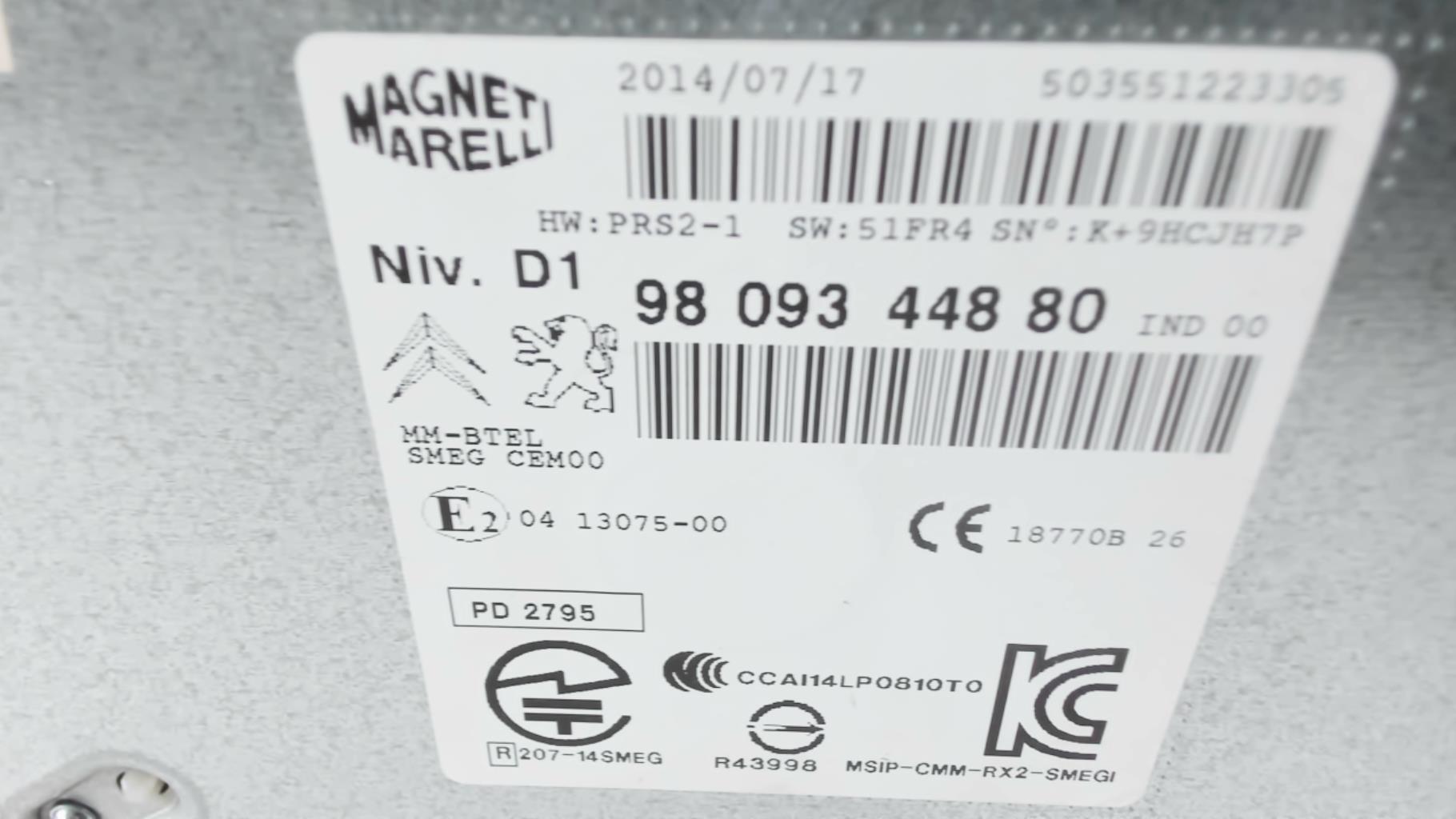 | description | Marque : magneti marelli Référence : 9809344880 Code autoradio : Inconnu |