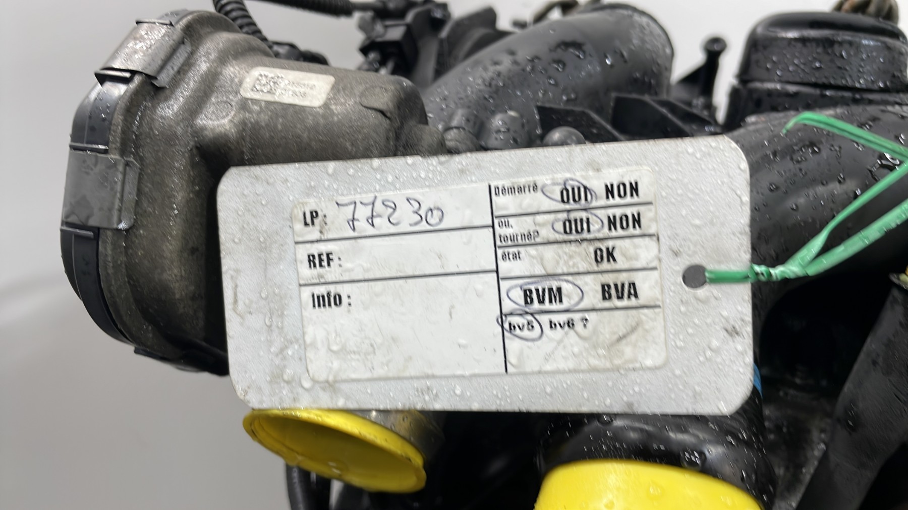 | description | Kilométrage : 218 000 Code moteur : TZJA Marque injection : bosch Démarrage sur véhicule : Oui Tests et contrôles : Ok Etat des caches et carters : Correct Etat du faisceau électrique : Bon Type boîte de vitesse : Manuelle Infos / Détails : carter d'huile enfoncé voir photo |