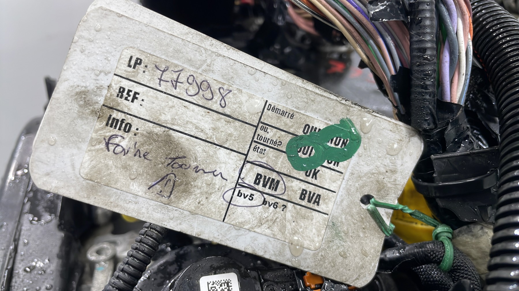 | description | Kilométrage : 125 000 Code moteur : K9K872 Marque injection : bosch Démarrage sur véhicule : Non Tests et contrôles : Ok Etat des caches et carters : Bon Etat du faisceau électrique : Bon Type boîte de vitesse : Manuelle Infos / Détails : Néant |