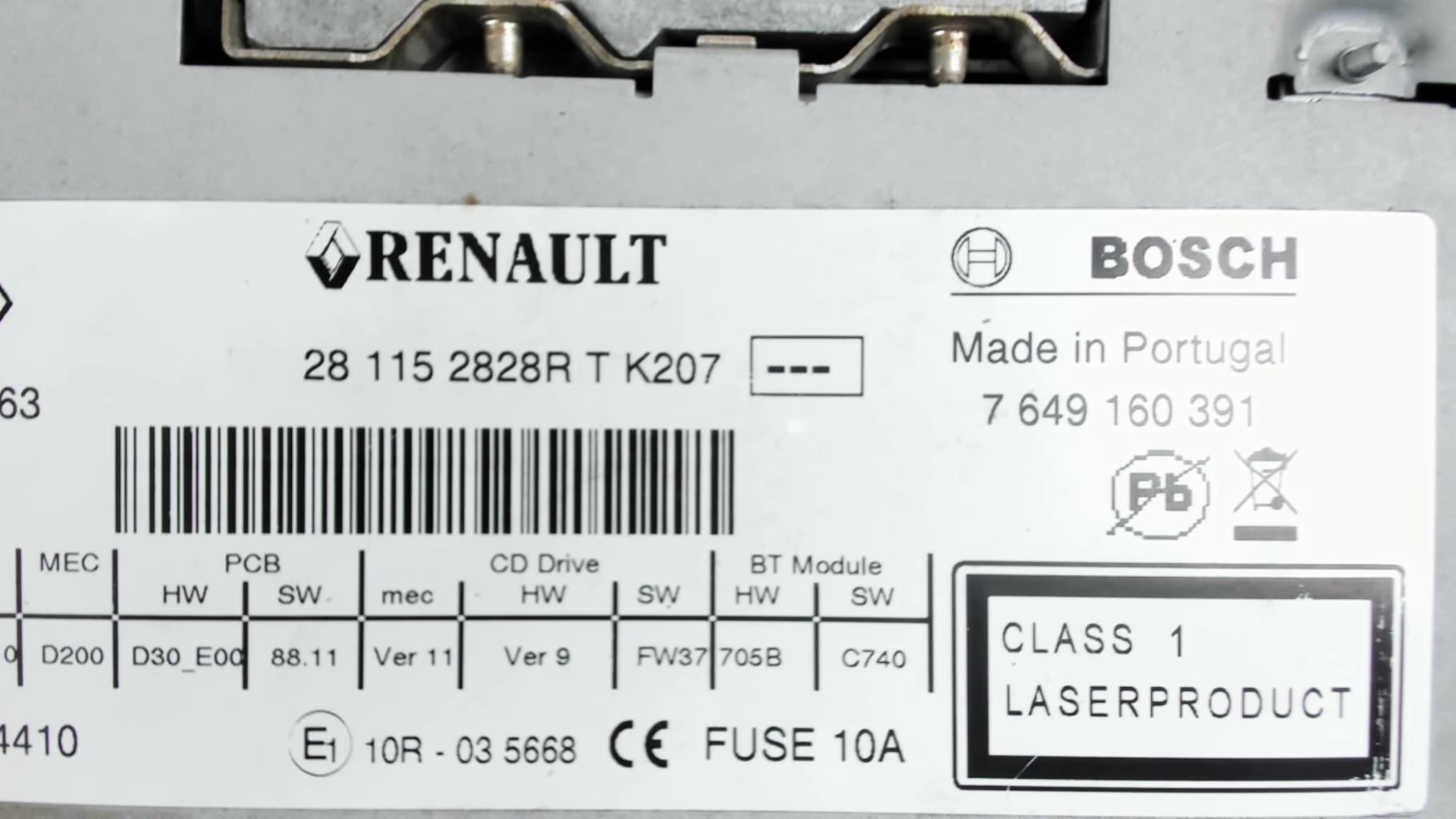 | description | Type : Cd Marque : bosch Référence : 281152828R Code autoradio : Inconnu |