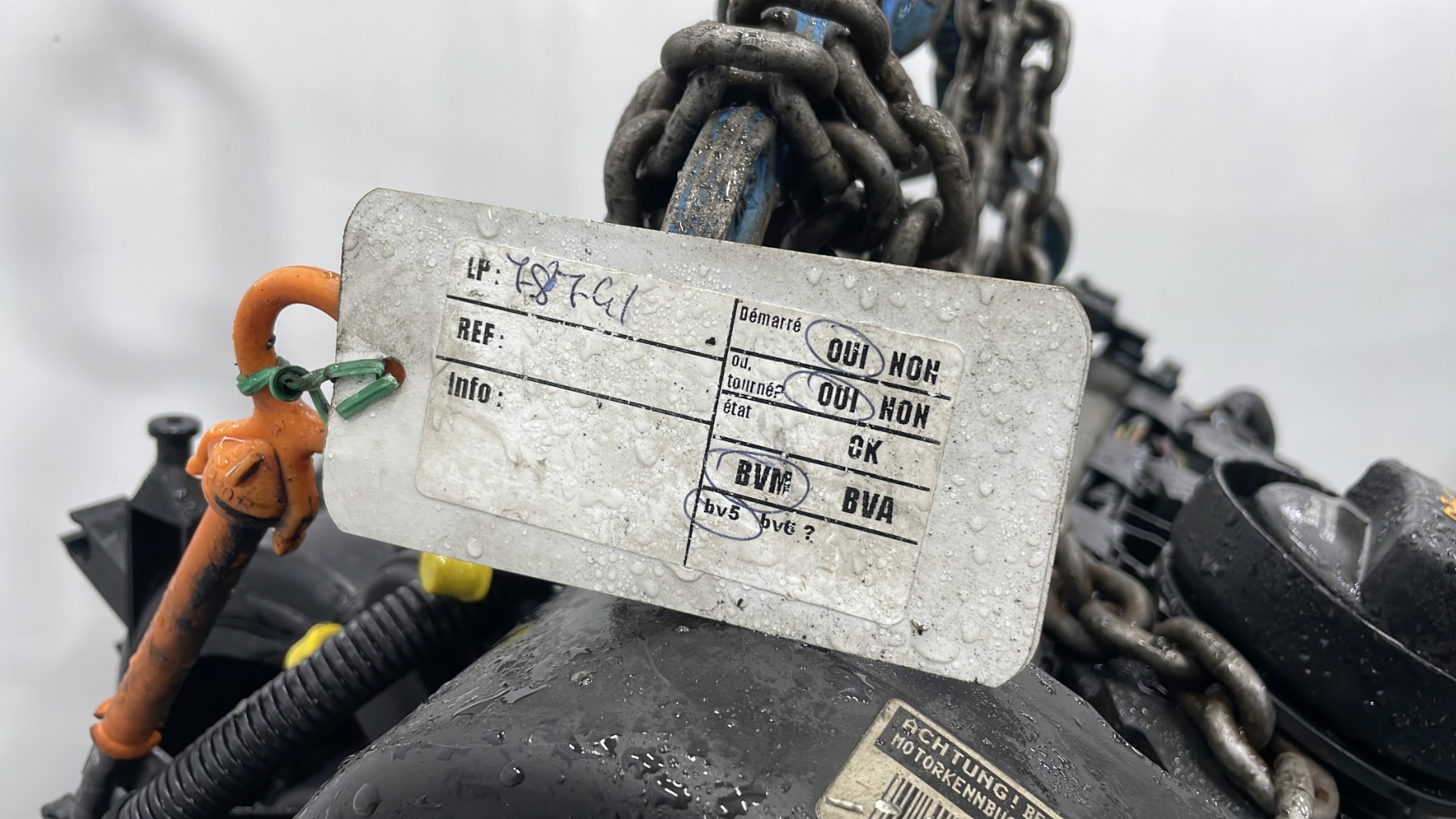 | description | Kilométrage : 247 000 Code moteur : BBZ Marque injection : nc Démarrage sur véhicule : Oui Tests et contrôles : Ok Etat des caches et carters : Bon Etat du faisceau électrique : Bon Type boîte de vitesse : Manuelle Infos / Détails : Néant |