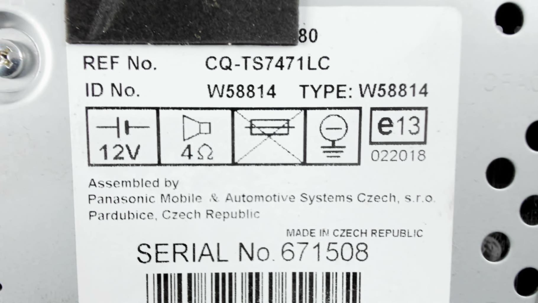 | description | Type : Cd Marque : panasonic Référence : CQ-TS7471LC Code autoradio : Inconnu |