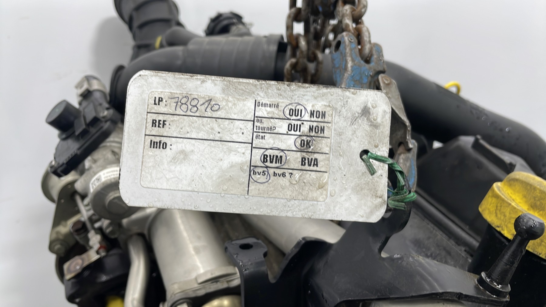 | description | Kilométrage : 239 000 Code moteur : K9K766 Marque injection : delphi Démarrage sur véhicule : Oui Tests et contrôles : Ok Etat des caches et carters : Bon Etat du faisceau électrique : Bon Type boîte de vitesse : Manuelle Infos / Détails : Néant |