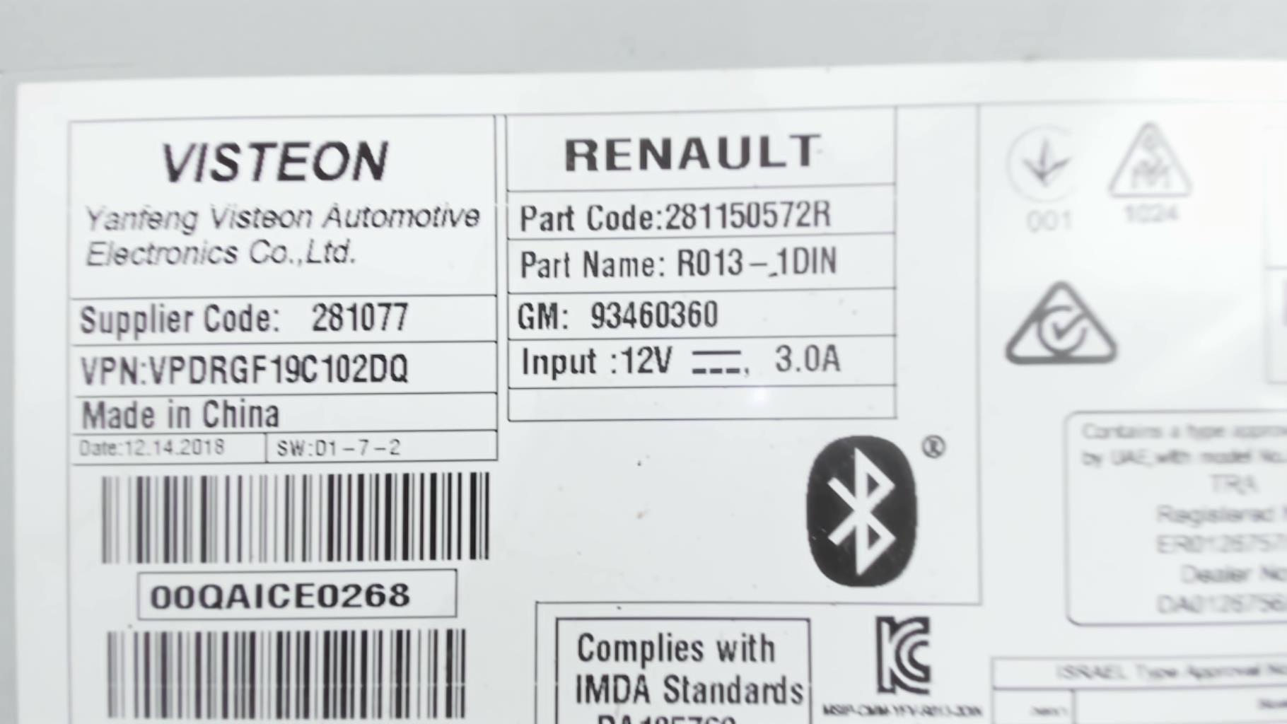 | description | Marque : visteon Référence : 281150572R 93460360 Code autoradio : Inconnu |