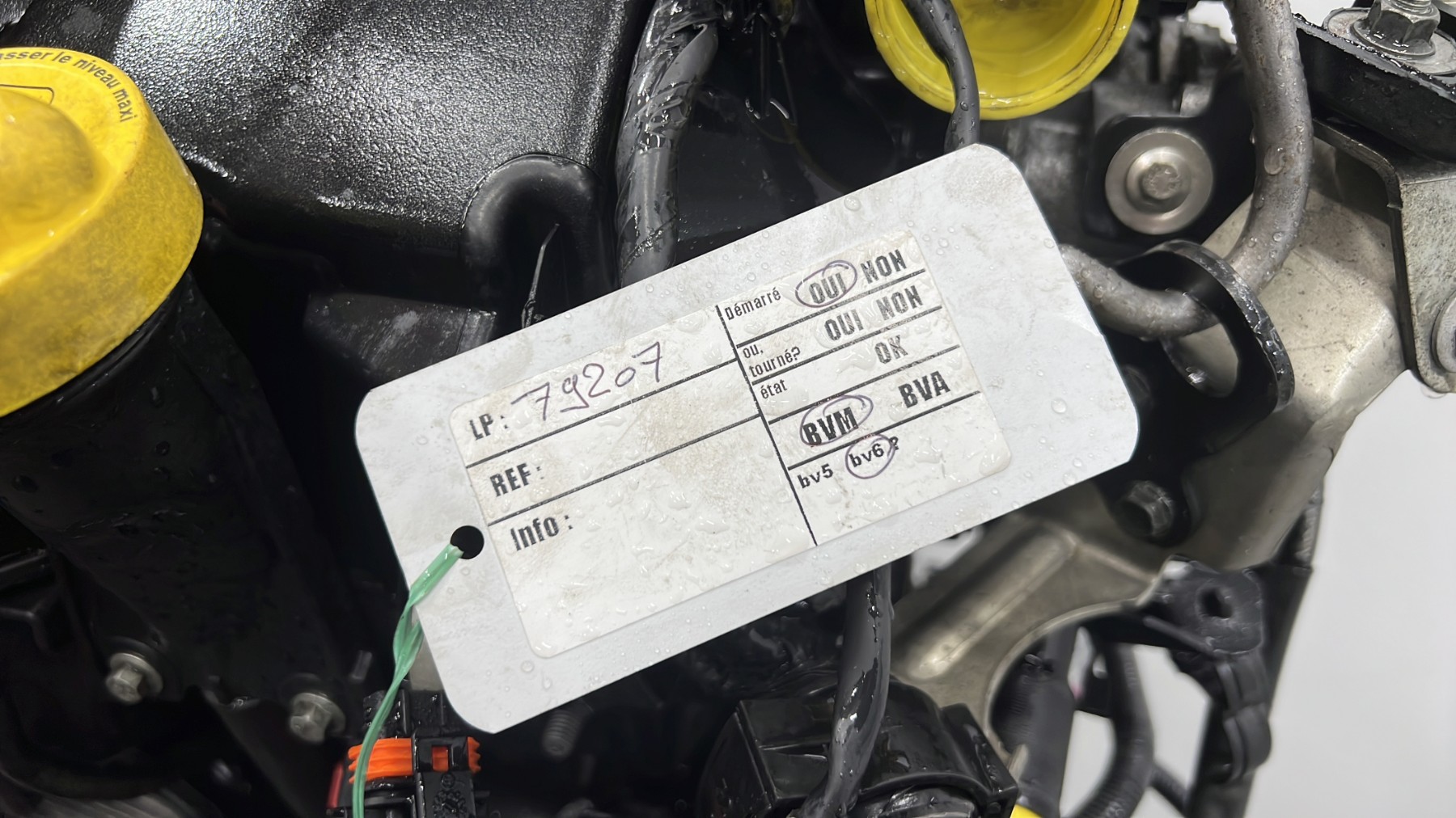 | description | Kilométrage : 159 000 Code moteur : K9K430 Marque injection : continental Démarrage sur véhicule : Oui Tests et contrôles : Ok Etat des caches et carters : Bon Etat du faisceau électrique : Bon Type boîte de vitesse : Manuelle Infos / Détails : Néant |