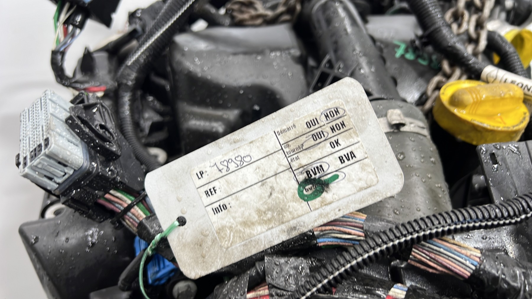 | description | Kilométrage : 175 000 Code moteur : K9K612 Marque injection : bosch Démarrage sur véhicule : Non Tests et contrôles : Ok Etat des caches et carters : Bon Etat du faisceau électrique : Bon Type boîte de vitesse : Manuelle Infos / Détails : Néant |
