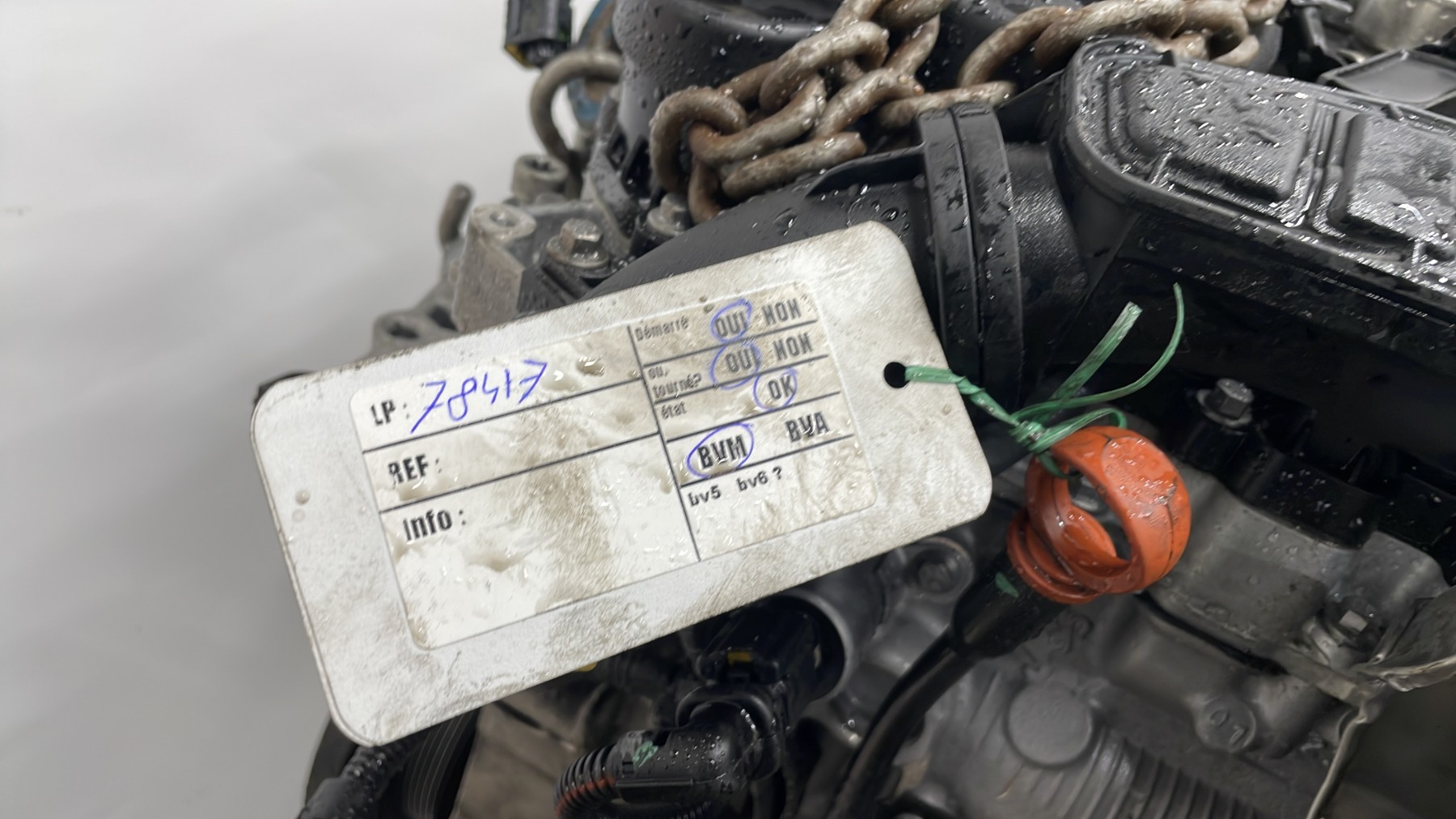 | description | Kilométrage : 101 000 Code moteur : HNZ Marque injection : nc Démarrage sur véhicule : Oui Tests et contrôles : Ok Etat des caches et carters : Bon Etat du faisceau électrique : Bon Type boîte de vitesse : Manuelle Infos / Détails : Néant |
