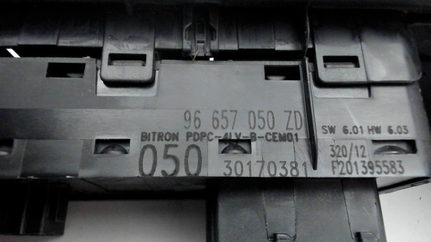 | description | Nombre interrupteur(s) de lève(s) vitre(s) : 4 (tous auto) Support : Avec Commande rétroviseur : Avec (rabattable élec.) Référence : 96657050ZD |