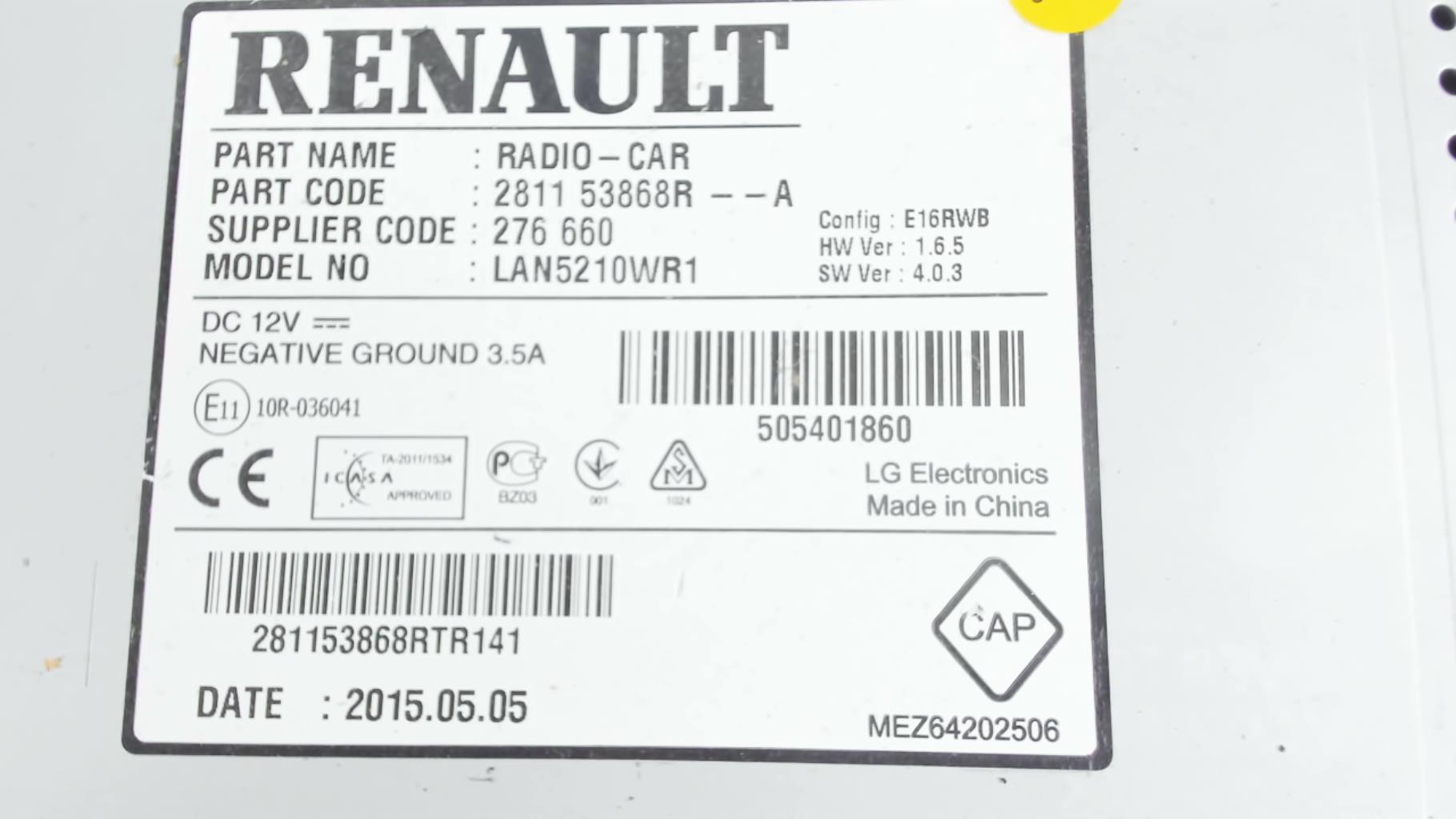 | description | Marque : lg electronics Référence : 281153868R Code autoradio : Inconnu |
