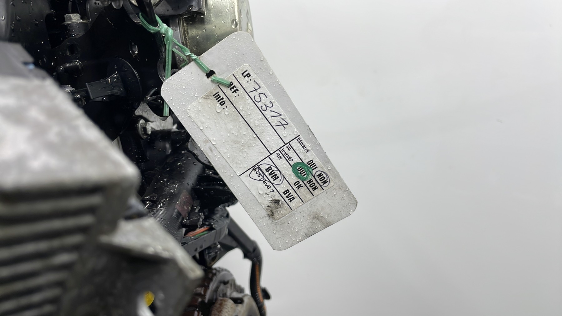 | description | Kilométrage : 67 000 Code moteur : K9K Marque injection : delphi Démarrage sur véhicule : Non Tests et contrôles : Ok Etat des caches et carters : Bon Etat du faisceau électrique : Bon Type boîte de vitesse : Manuelle Infos / Détails : Néant |