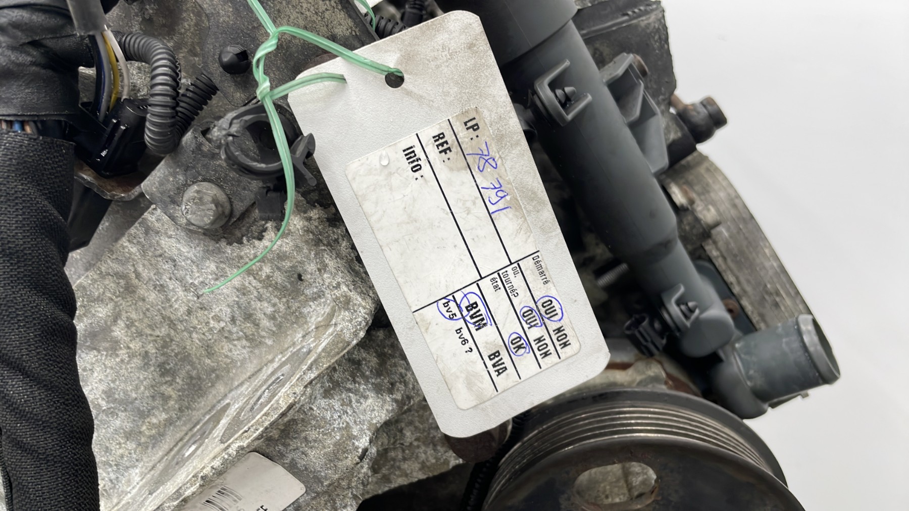 | description | Kilométrage : 173 000 Code moteur : 199A2000 Marque injection : bosch Démarrage sur véhicule : Oui Tests et contrôles : Ok Etat des caches et carters : Bon Etat du faisceau électrique : Correct Type boîte de vitesse : Manuelle Infos / Détails : Néant |