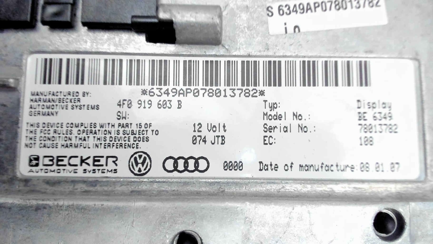 | description | Marque : becker Nombre de prise(s) : 1 Référence : 4F0919603 4F0919603B |