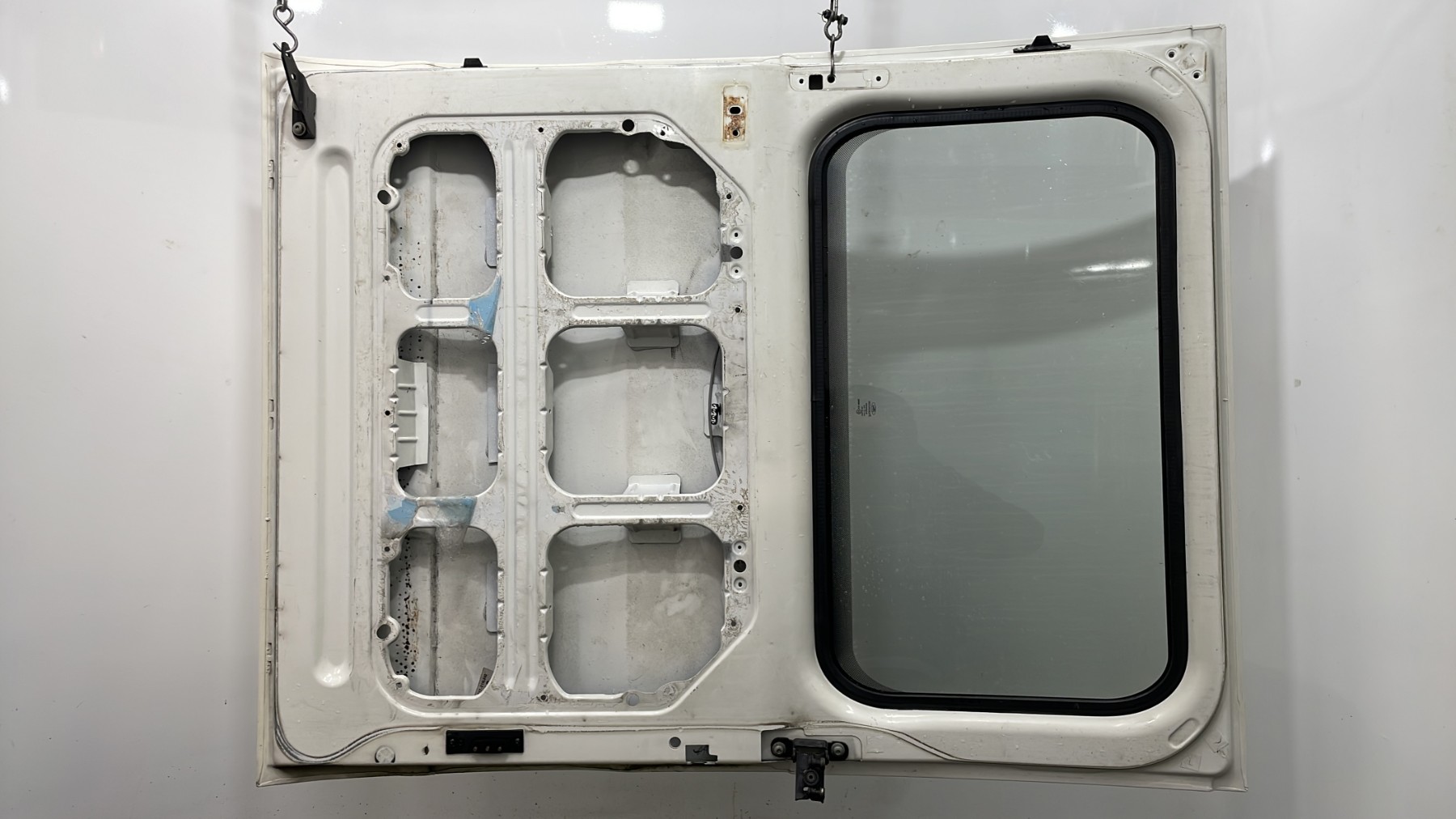 | description | Lève vitre : Sans Vitre : Avec Serrure : Avec Baguette : Sans Poignée extérieure : Sans Largeur : 118 cm Hauteur : 154cm quelques bosses voir photo |