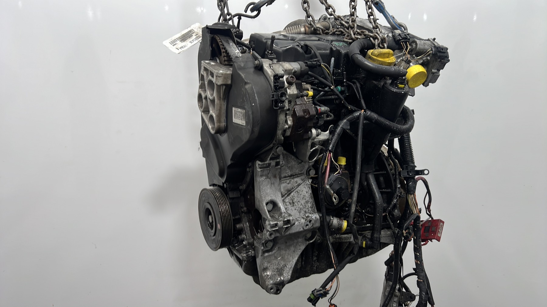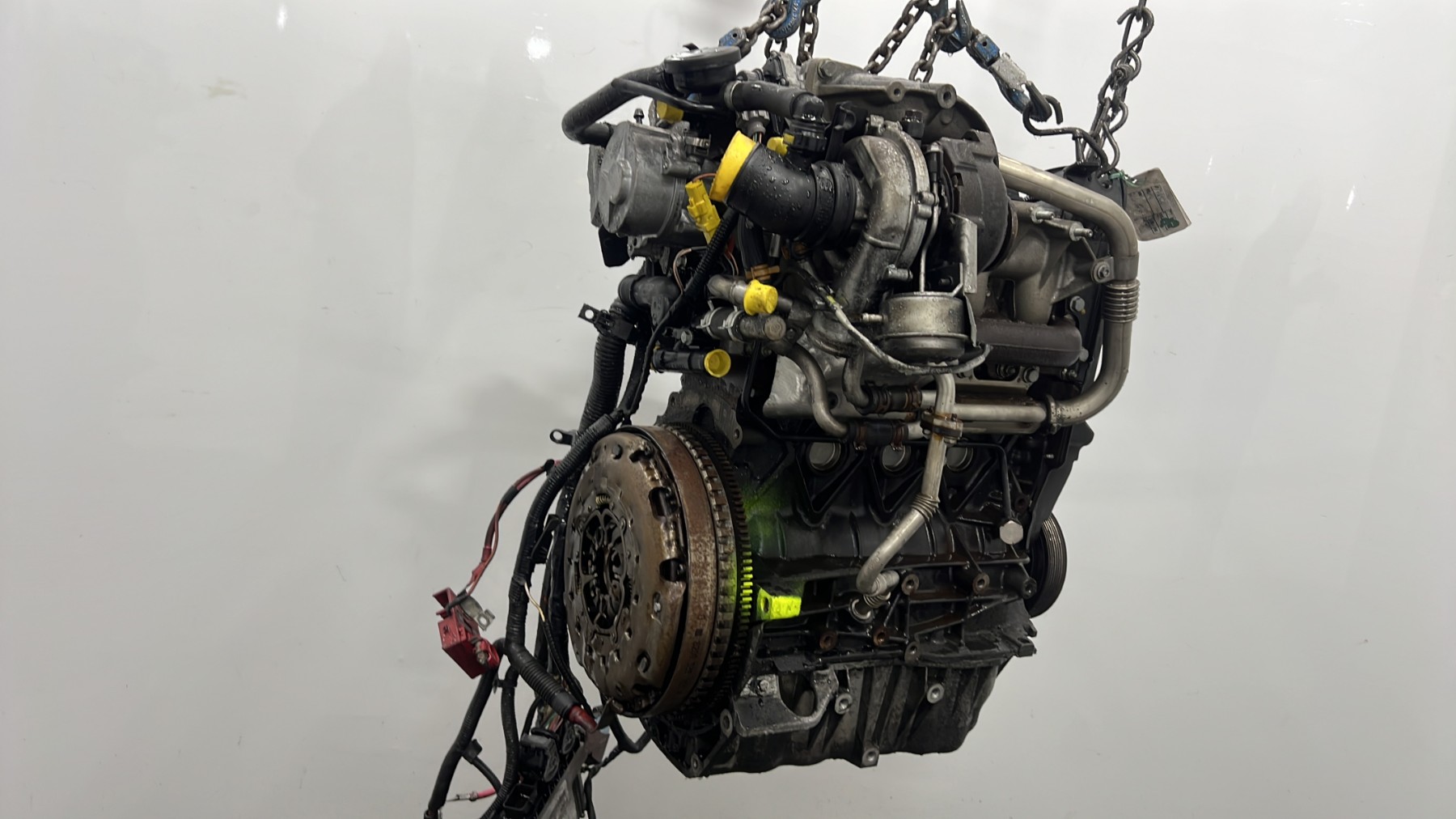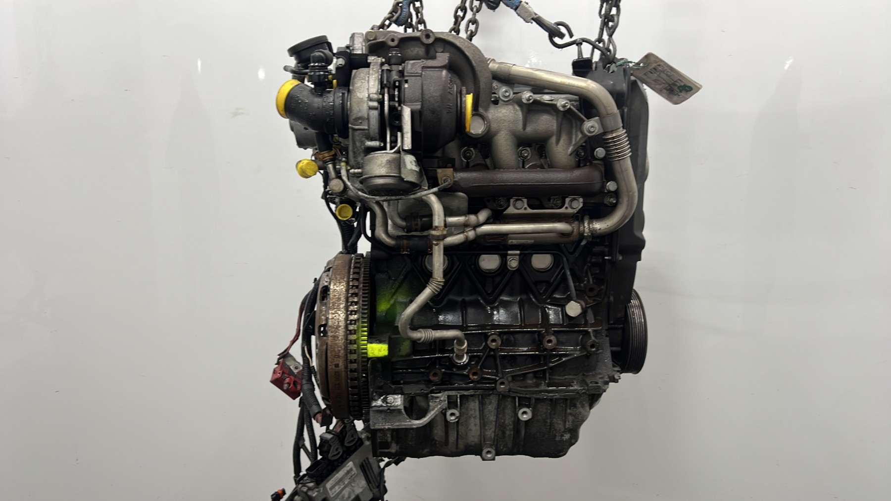 | description | Kilométrage : environ 240 000* Code moteur : F9Q804 Marque injection : bosch Démarrage sur véhicule : Non Tests et contrôles : Ok Etat des caches et carters : Bon Etat du faisceau électrique : Bon Type boîte de vitesse : Manuelle 6 Infos / Détails : turbo, distributeur injection, volant moteur, embrayage *document avec 200 000 trouvés dans le véhicule d’il y a quelques années, au vu des états de surfaces particulièrement corrects, turbo avec référence bien visible, environ 240 000 au jugé (voir photos), turbo avec référence bien visible, surfaces en alu et acier très peu sollicitées thermiquement |