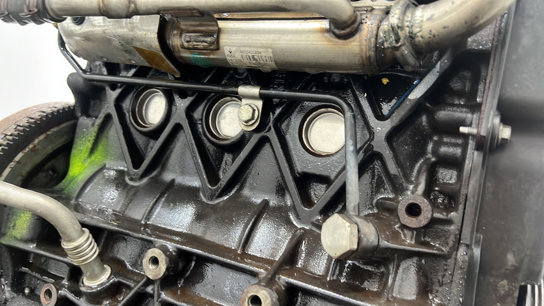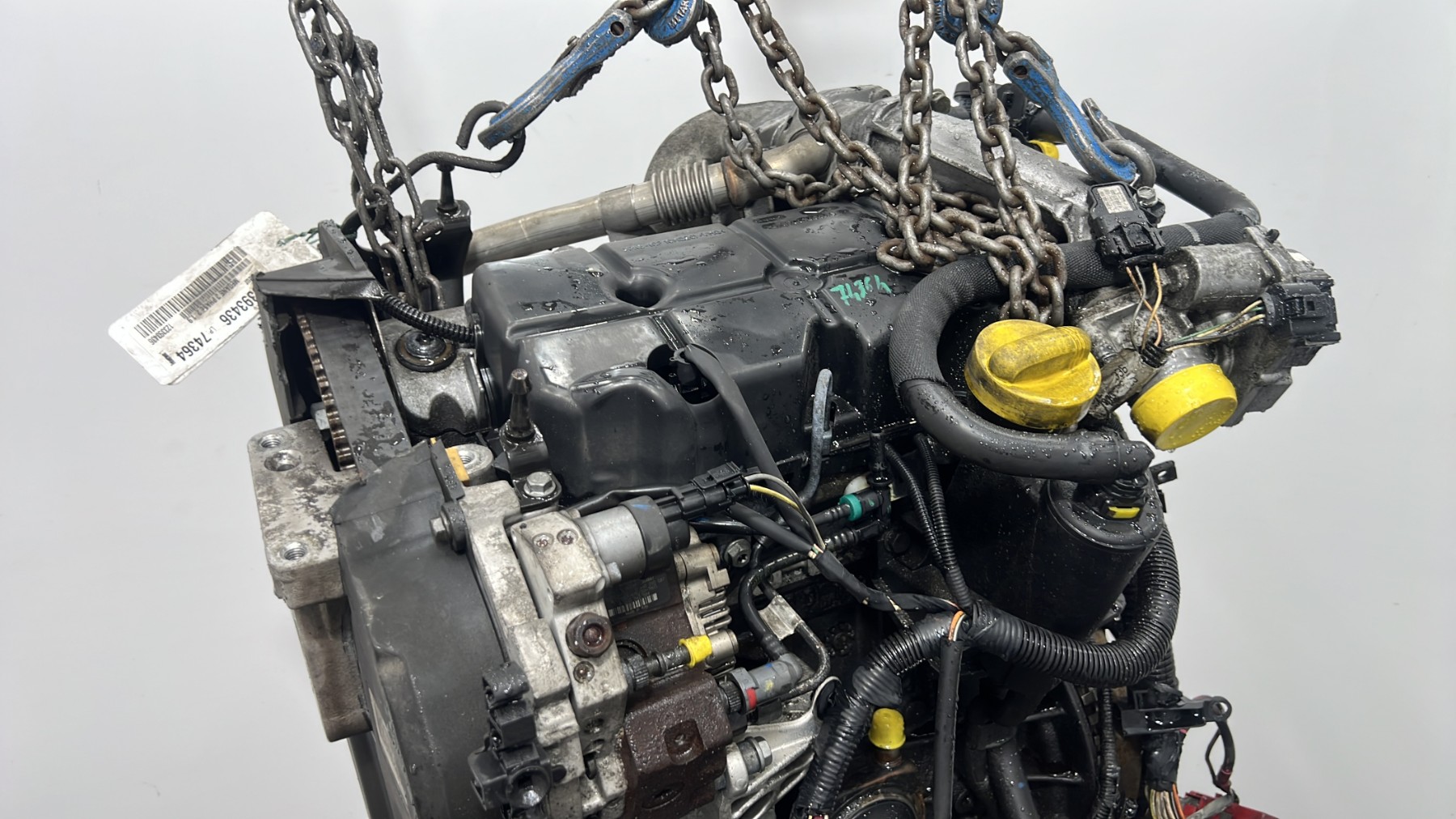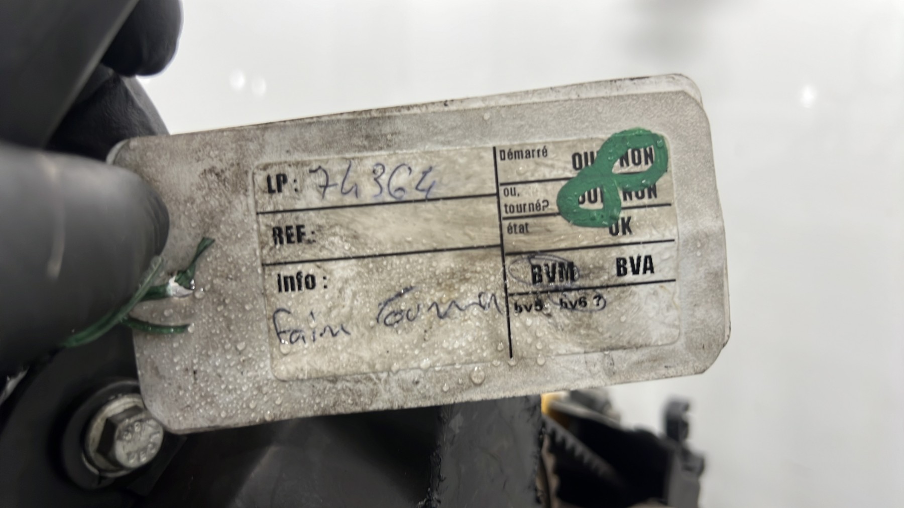 | description | Kilométrage : environ 240 000* Code moteur : F9Q804 Marque injection : bosch Démarrage sur véhicule : Non Tests et contrôles : Ok Etat des caches et carters : Bon Etat du faisceau électrique : Bon Type boîte de vitesse : Manuelle 6 Infos / Détails : turbo, distributeur injection, volant moteur, embrayage *document avec 200 000 trouvés dans le véhicule d’il y a quelques années, au vu des états de surfaces particulièrement corrects, turbo avec référence bien visible, environ 240 000 au jugé (voir photos), turbo avec référence bien visible, surfaces en alu et acier très peu sollicitées thermiquement |