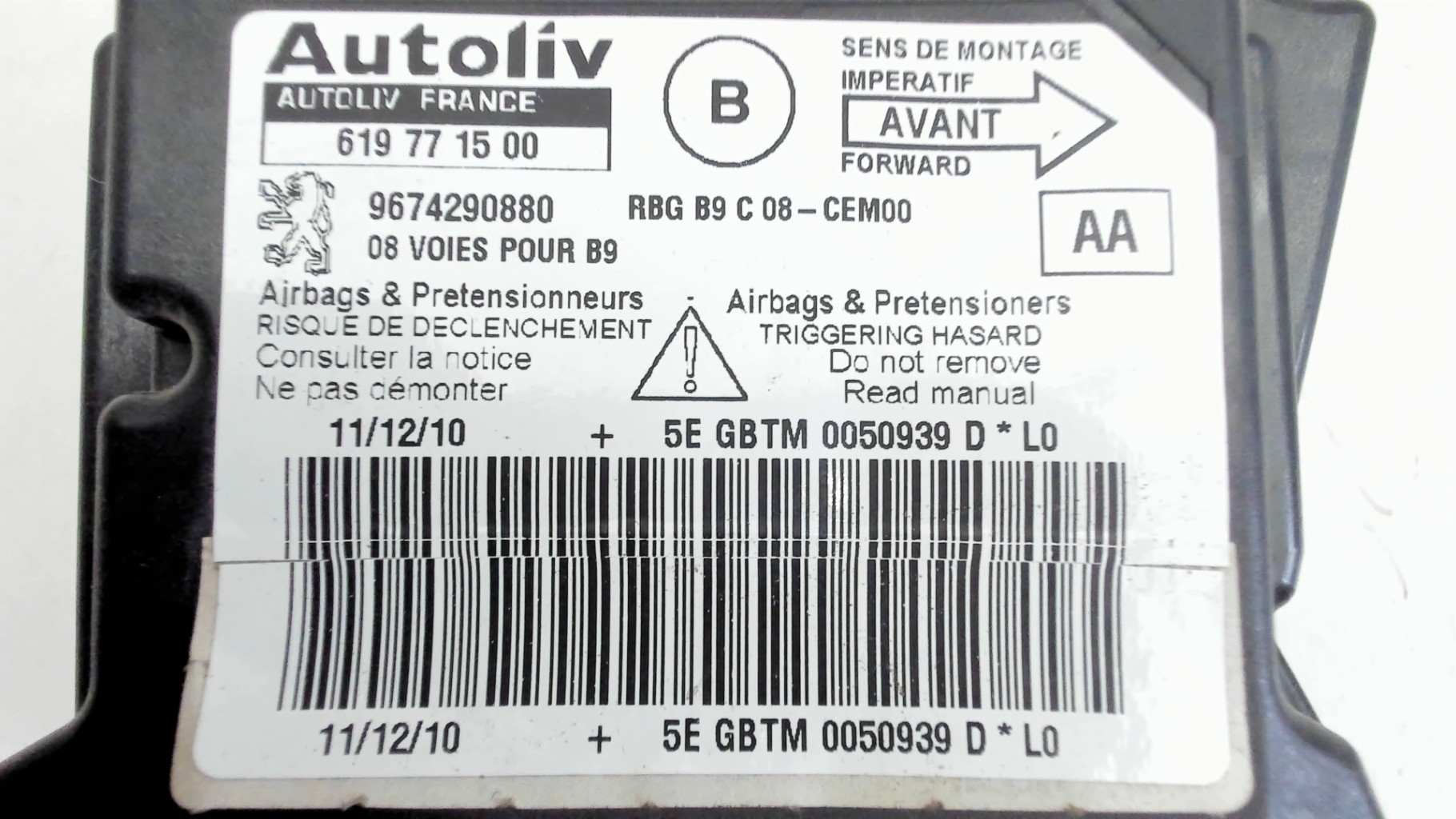 Boitier airbag Peugeot PARTNER 2 PHASE 1