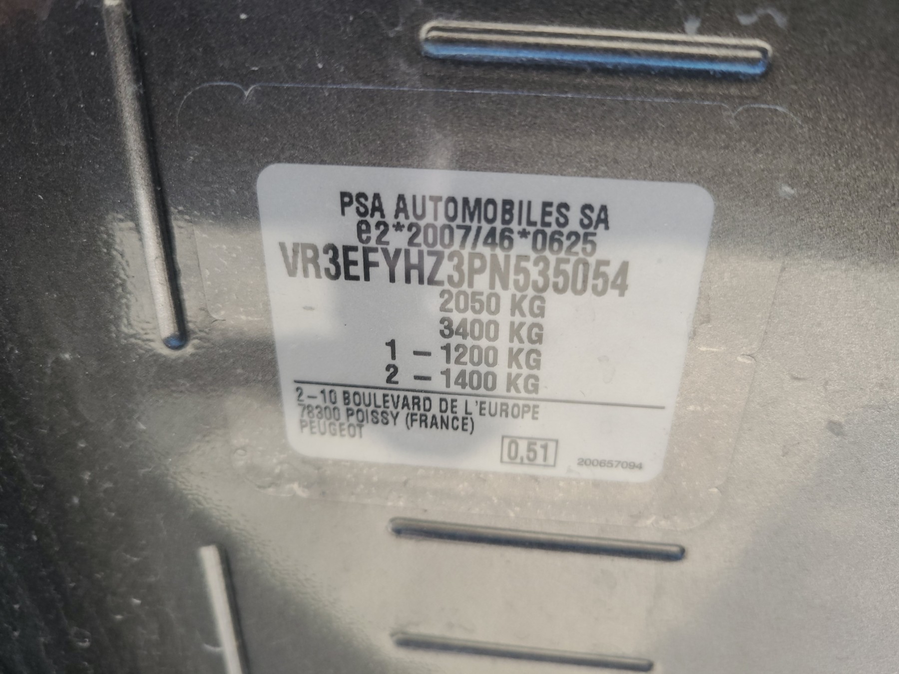 VIN | VR3EFYHZ3PN535054 |